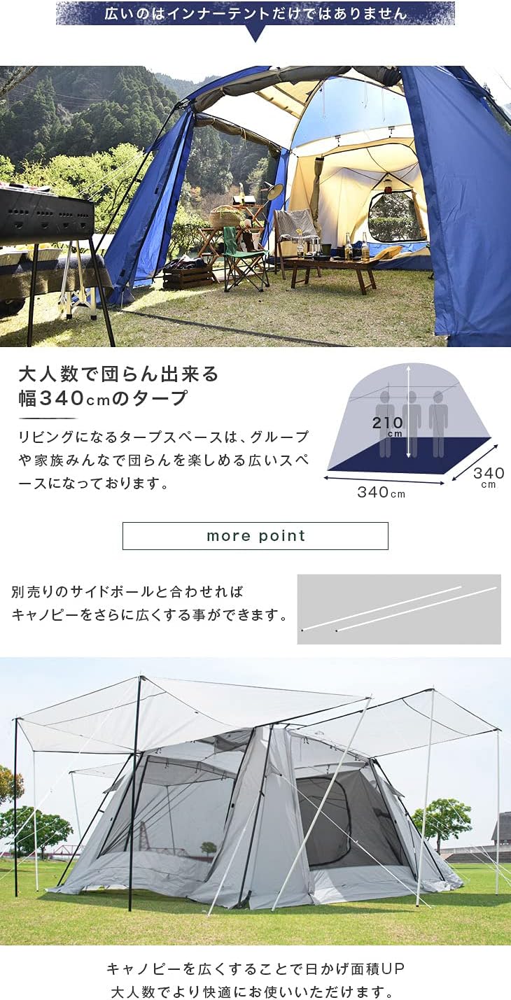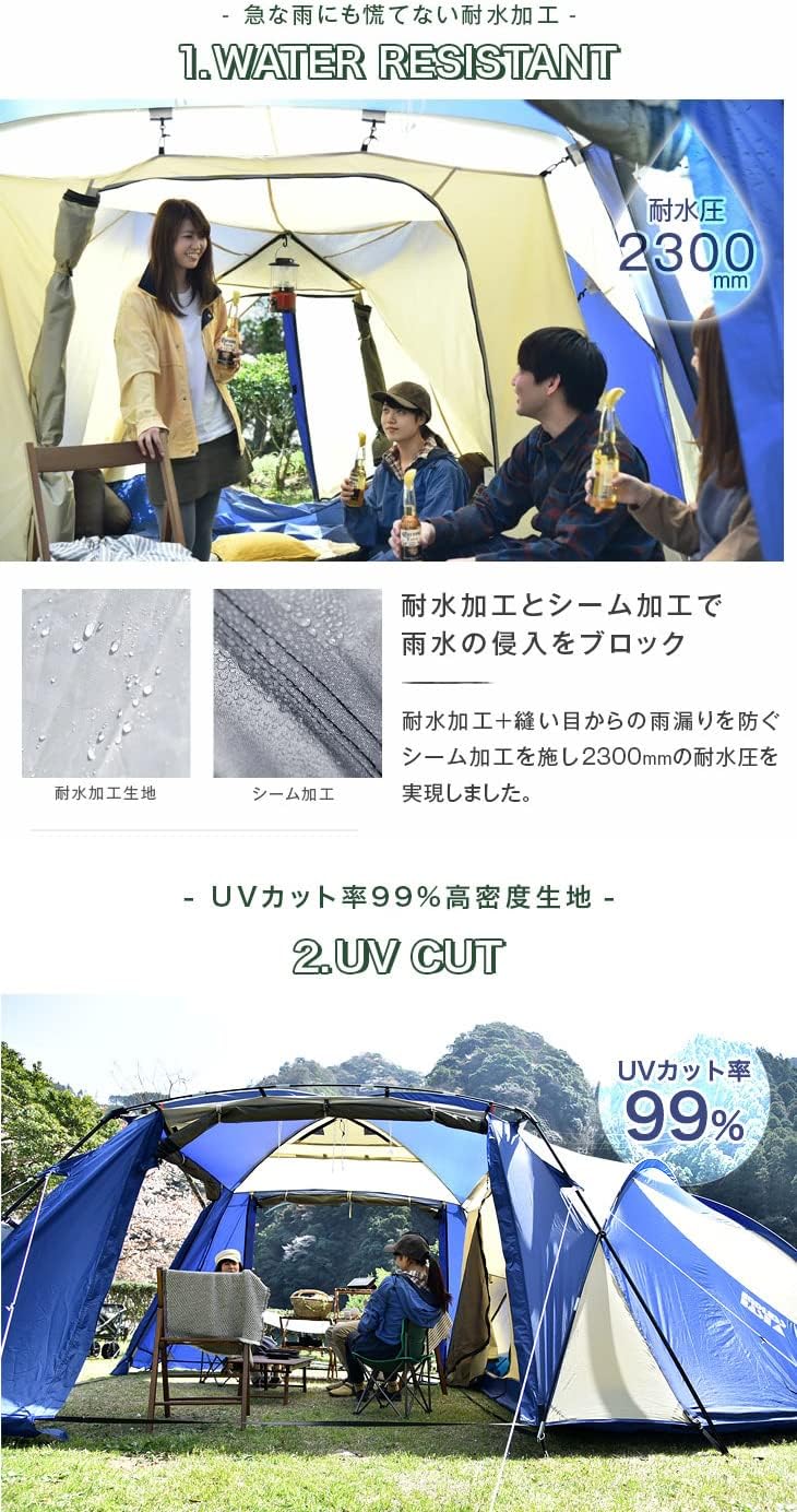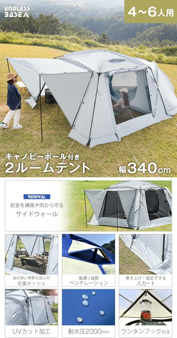 究極のアウトドア体験を叶える、広々2ルームテント!4〜6人の家族キャンプに最適な快適空間をご提供