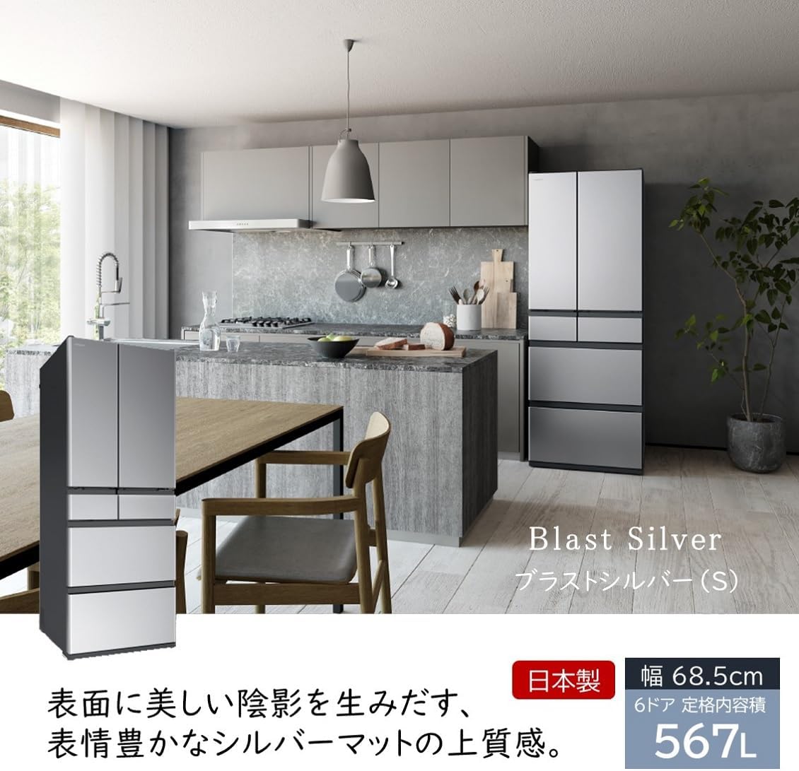 日立R-KWC57S冷蔵庫は、幅68.5cm、容量567Lという余裕のある収納スペースを提供しながらも、洗練されたブラストシルバーのデザインで、どんなキッチンにも美しく調和します。マット質感のブラスト加工が施された扉表面は、柔らかな光を反射する美しいスチールプレートで仕上げられており、周囲の環境を反映するエレガントな色合いが、インテリアに溶け込み、落ち着きと高級感を演出します。6つのドアを備えたフレンチドアスタイルは、使いやすさと機能性を兼ね備え、日々の食材管理を効率的に行えるよう設計されています。また、日立冷蔵庫コンシェルジュアプリを使用すれば、スマートフォンと冷蔵庫を簡単に接続し、保存状況や保存食品を安全に管理することができます。QRコード読み取り方式を採用しているため、接続も簡単です。日本製の高品質な製品として、細部まで丁寧に作り込まれた日立R-KWC57S冷蔵庫は、あなたの食生活をより豊かにする頼もしいパートナーとなるでしょう。